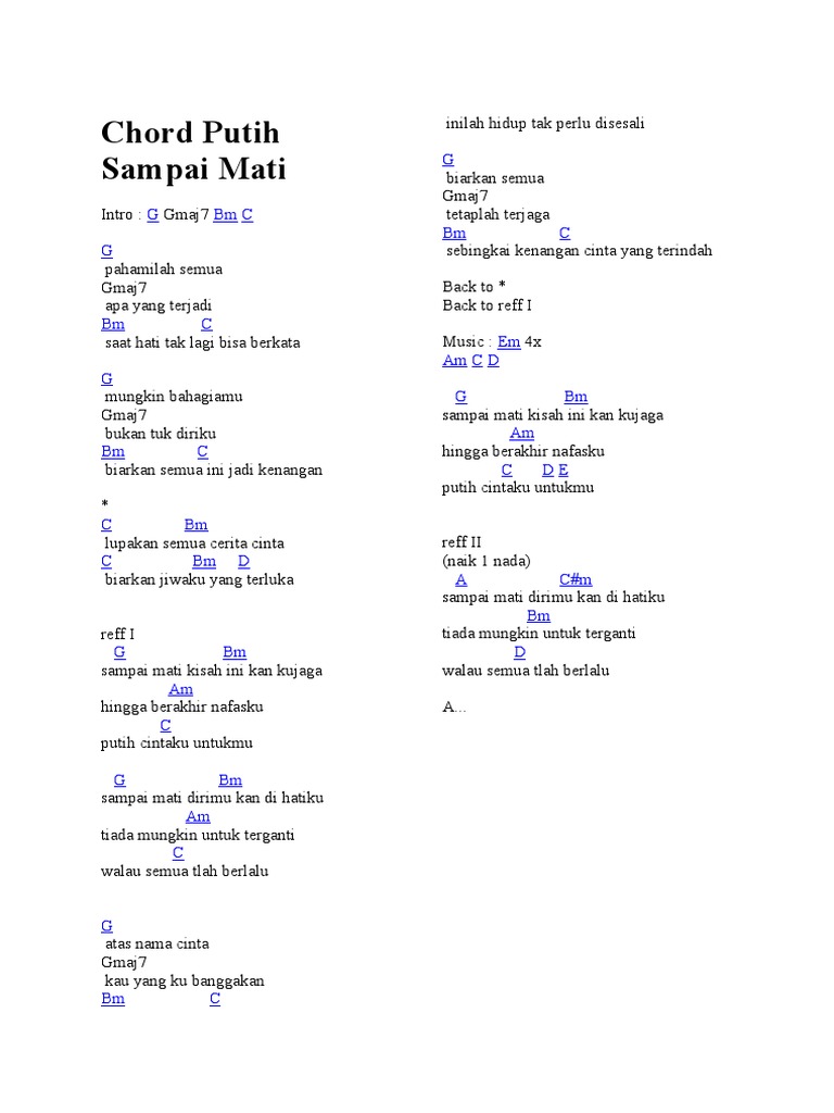 Tag Chord Kunci Gitar Sampai Mati Putih Band Chord Kunci Gitar Sampai Mati Putih Band Tribun Jateng