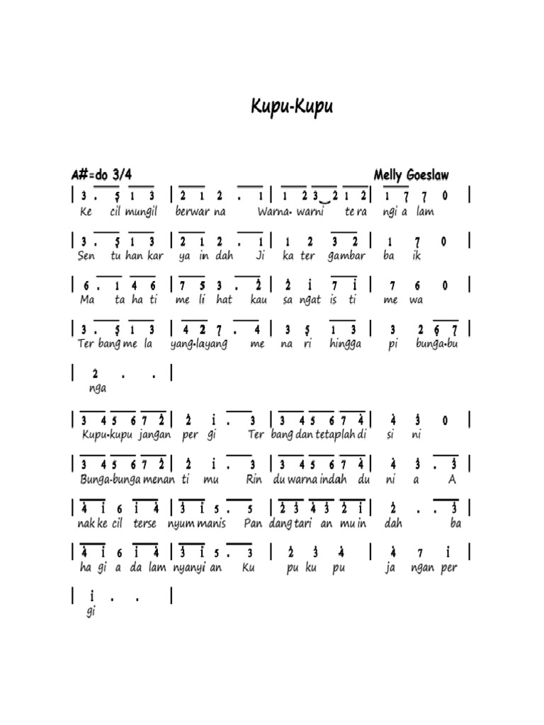 Not Angka Pianika Kupu Kupu Melly Goeslaw Not Angka Pianika