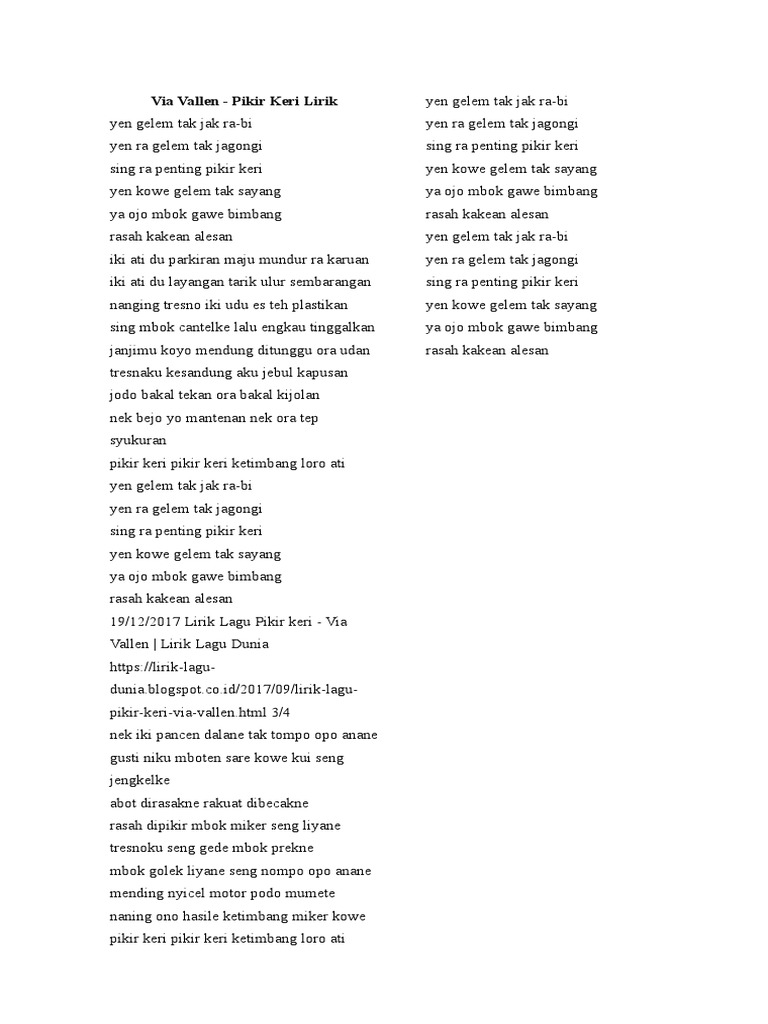 Teks Lagu Pikir Keri Via Vallen Berbagai Teks Penting