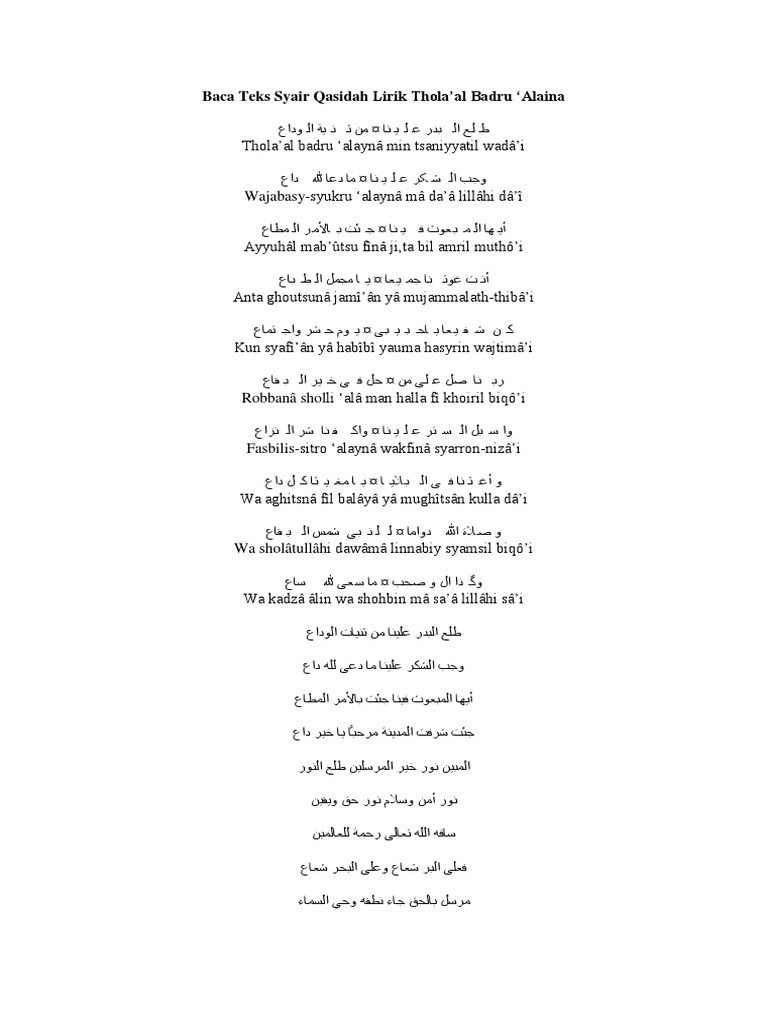 Lirik Sholawat Thola Al Badru Alayna طلع البدر علينا Arab Latin Dan Terjemahan Indonesia Cirebon Bersholawat